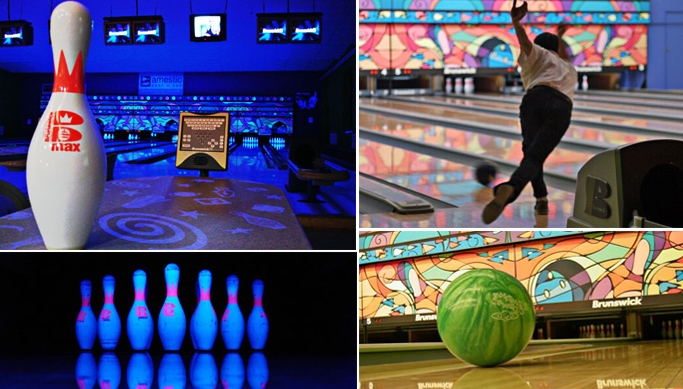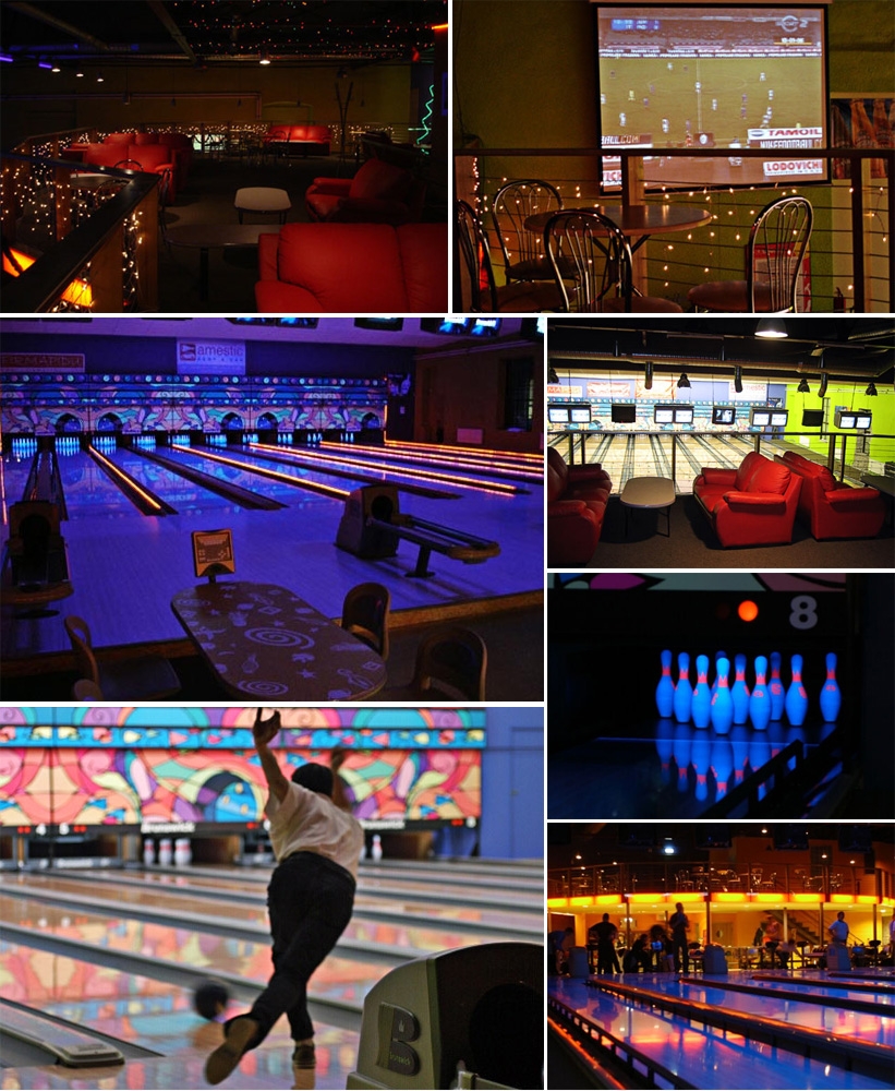 Дорожки для боулинга оснащены ультрафиолетовым светом, что позволяет проводить вечерние игры в боулинг в сопровождении приятной музыки и света.