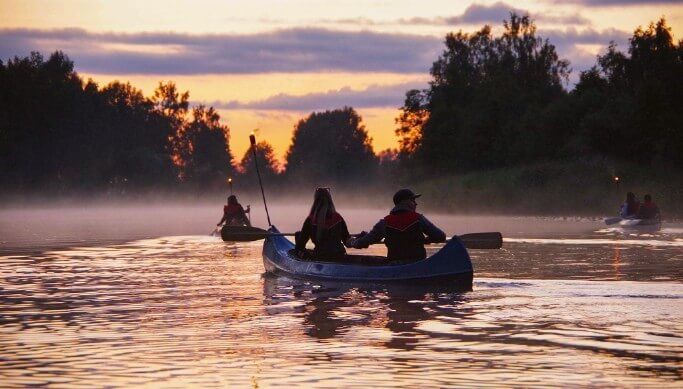 Põnev ja romantiline öine kanuusõit Emajõel. Kanuutamine hämaral ajal on täiesti omaette elamus – päikeseloojangu värvid, tõrvikute valgus, õhtused loodushääled, kerge udu vee kohal, linna tuledesära Emajõelt vastu peegeldamas, see kõik tekitab väga müstilise tunde. Sõidame kogenud matkajuhi juhendamisel ühtse grupina läbi linnaserva looduse ülesjõge kuni Kvissentalini, seal keerame otsa ringi ja suundume tagasi Tartusse. Valgustuseks ja meeleolu loomiseks on kanuude ninadesse kinnitatud tõrvikud.