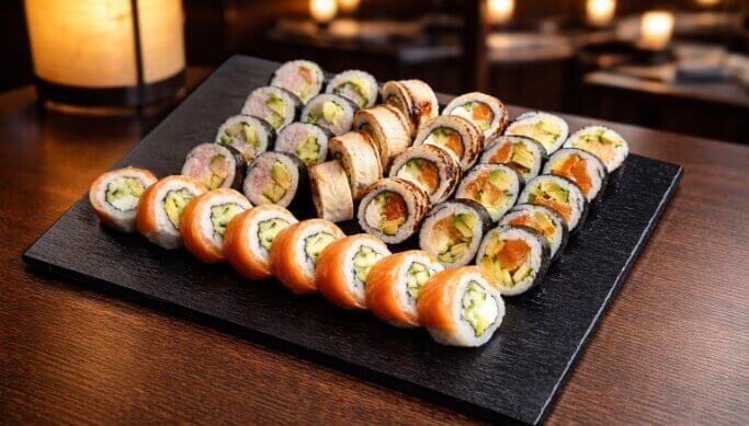 Naudi Samurai Sushi rikkalikke assortiisid – vali oma lemmik set ja tee oma sushiõhtu tõeliselt eriliseks. Sobib nii kaasa tellimiseks kui kohapeal nautimiseks!